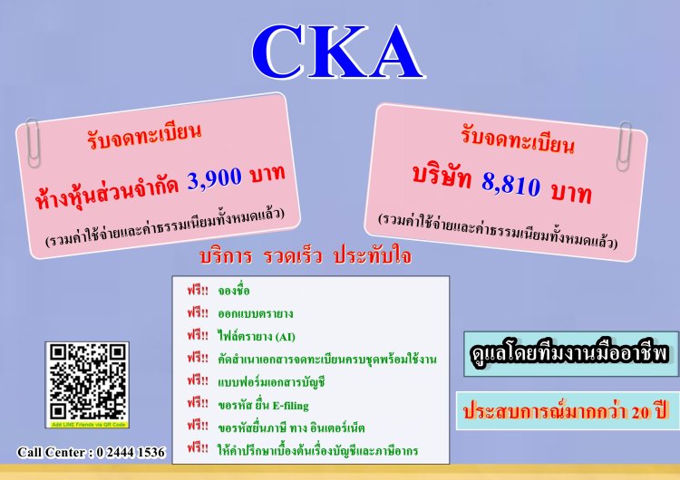 CKA มีทีมงานที่มีความรู้ ประสบการณ์โดยตรง พร้อมให้คำปรึกษา ในด้านรับจดทะเบียนบริษัท, รับจดบริษัท,