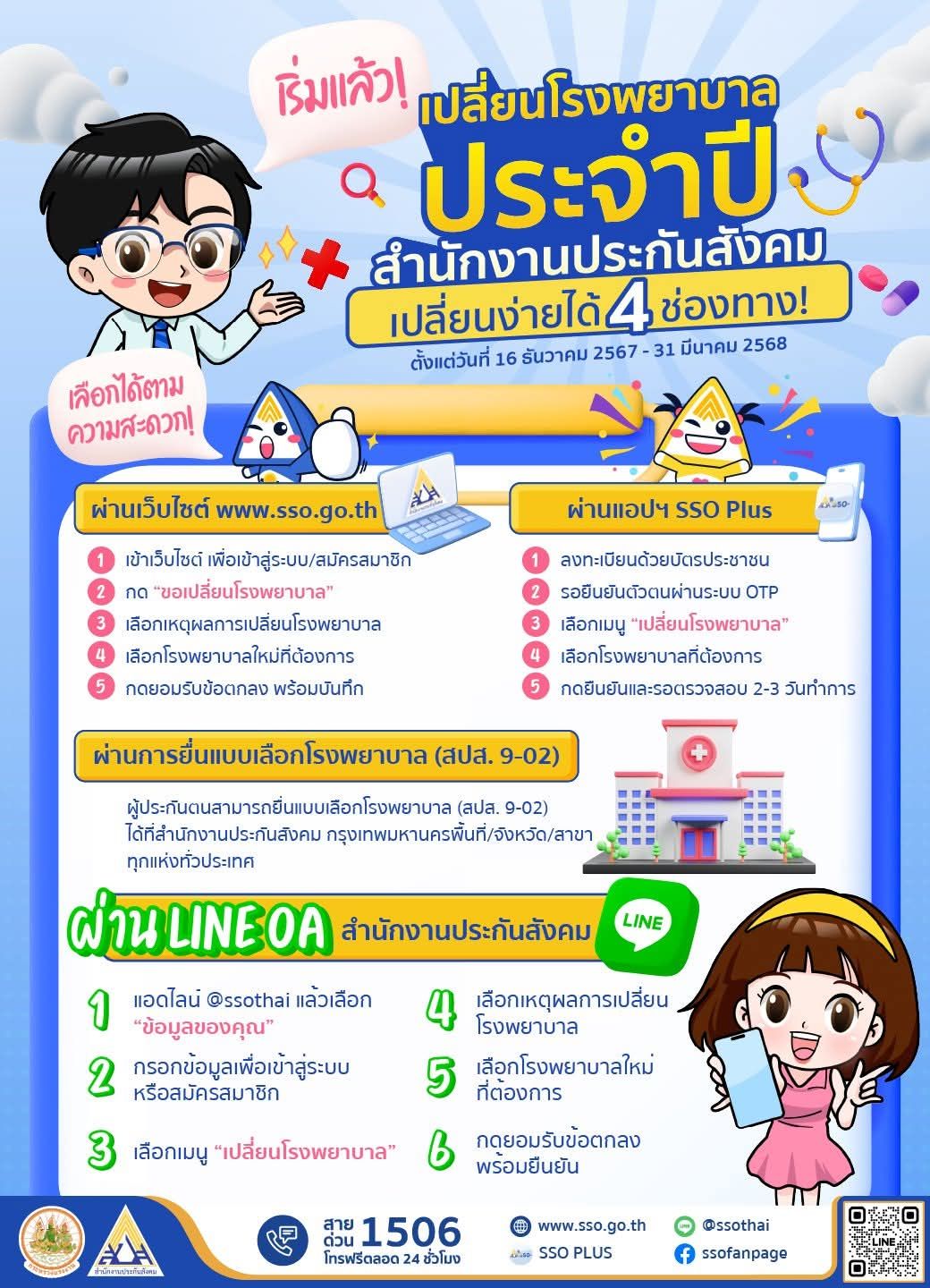 เว็บไซต์ สปส.: www.sso.go.th (ระบบ E-self service)